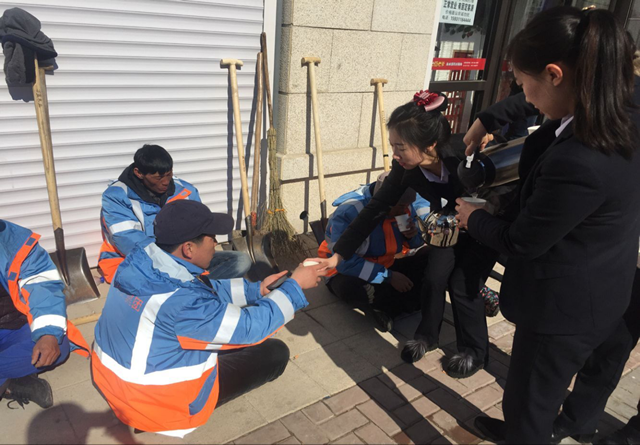 商行大洼支行的四名党员及积极分子表示,能够为环卫工人送去一点点温暖,感到无比的开心。