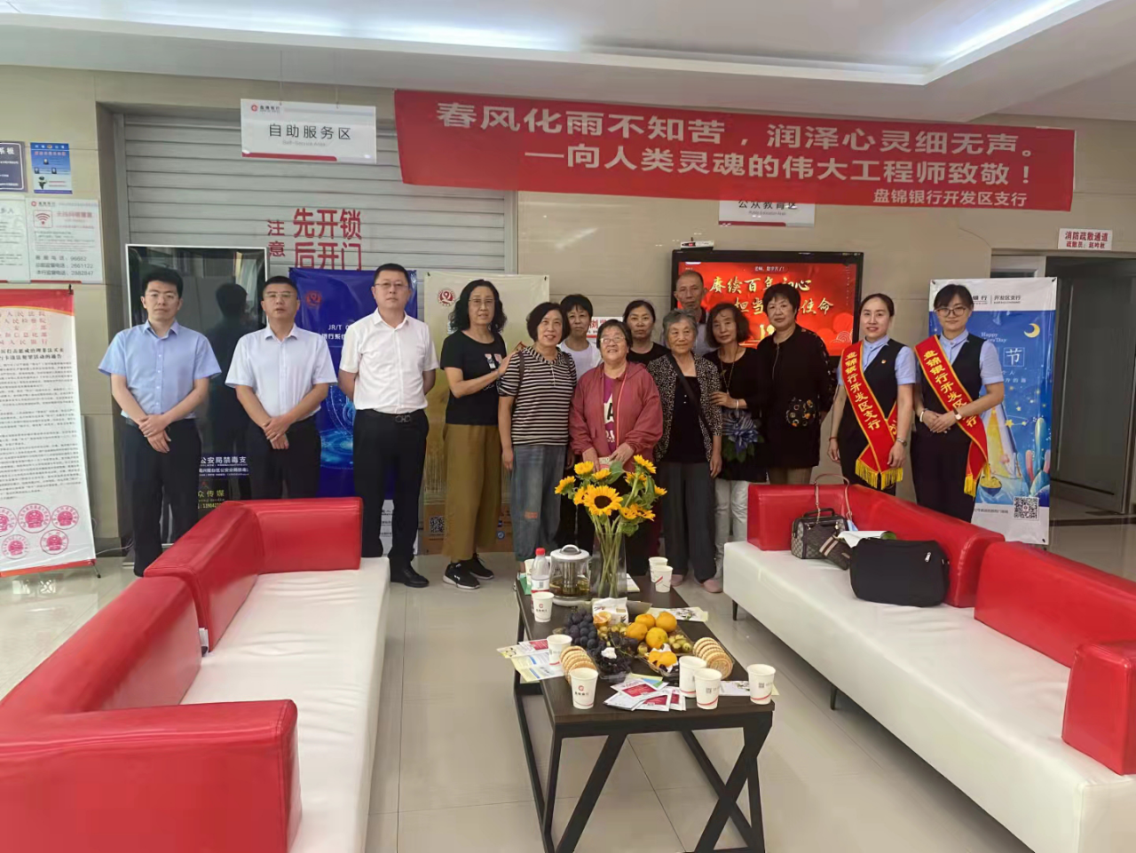 此外,盘锦支行、盘建支行、中银支行等多家网点也精心准备了教师节礼物,为前来办理业务的教师们送去一份节日祝福,以表达对教师们的敬意。
