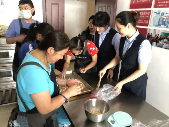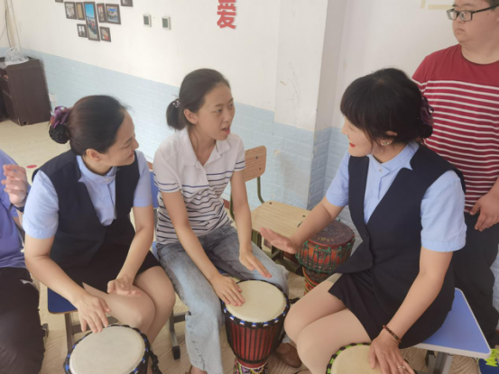 节日当天,兴隆台支行前往原之爱心智障碍儿童家长互助中心,为特教教师们送去温暖和节日的祝福,并与心智障碍儿童一起为老师表演手鼓,一起为老师制作月饼,让特教教师们感受到节日的快乐。